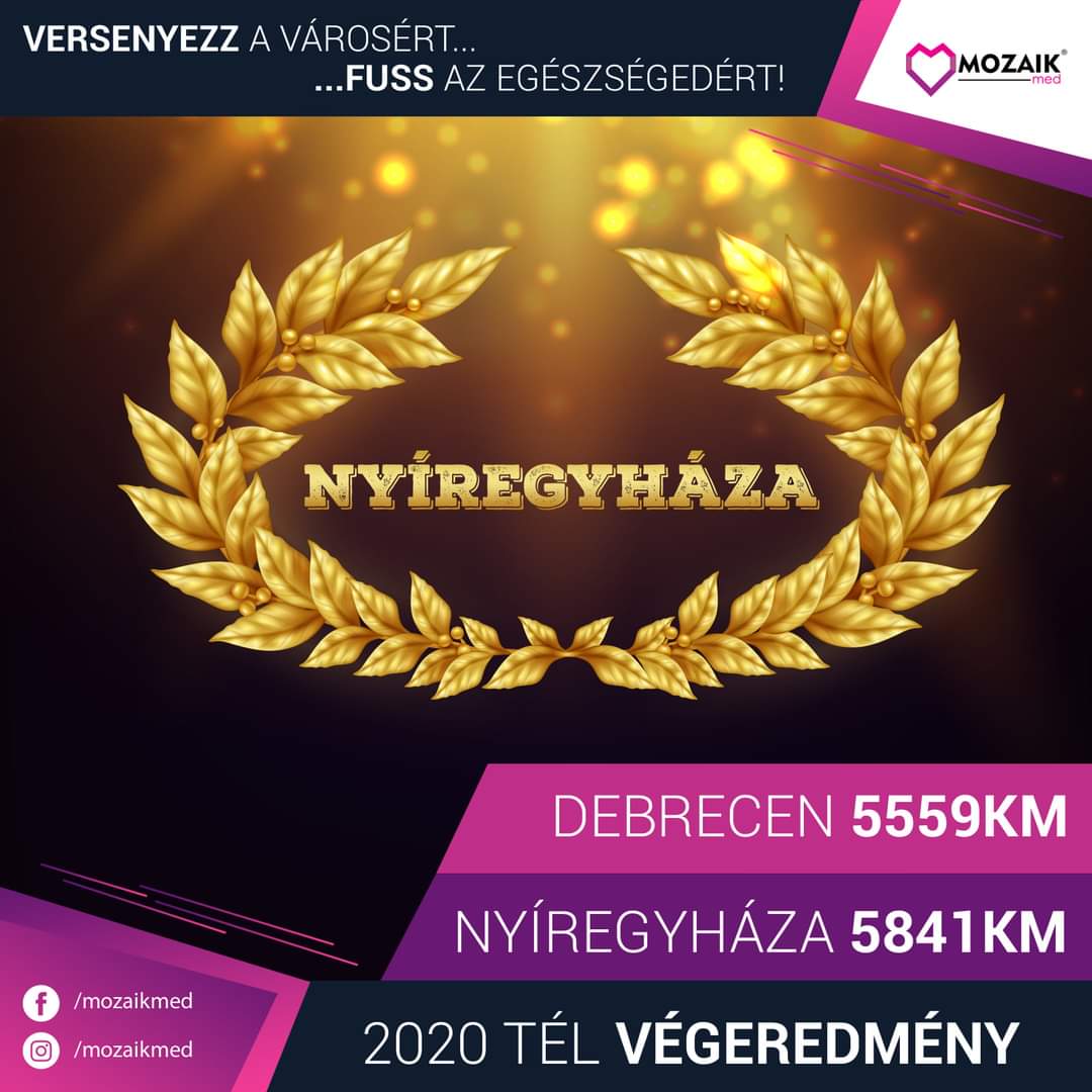 - Versenyezz a városért, fuss az egészségedért! A verseny célja, hogy a rendkívüli helyzetben is tudjanak versenyezni a futóink. Nyíregyháza és Debrecen város közösségi tagjai versenyeztek egymással, egységes csapatként örülve egymás sikereinek. 3 hét alatt 139 futó összesen 11 400 km-ert tett meg! Elképesztően izgalmas versenyben Nyíregyháza futói diadalmaskodtak.