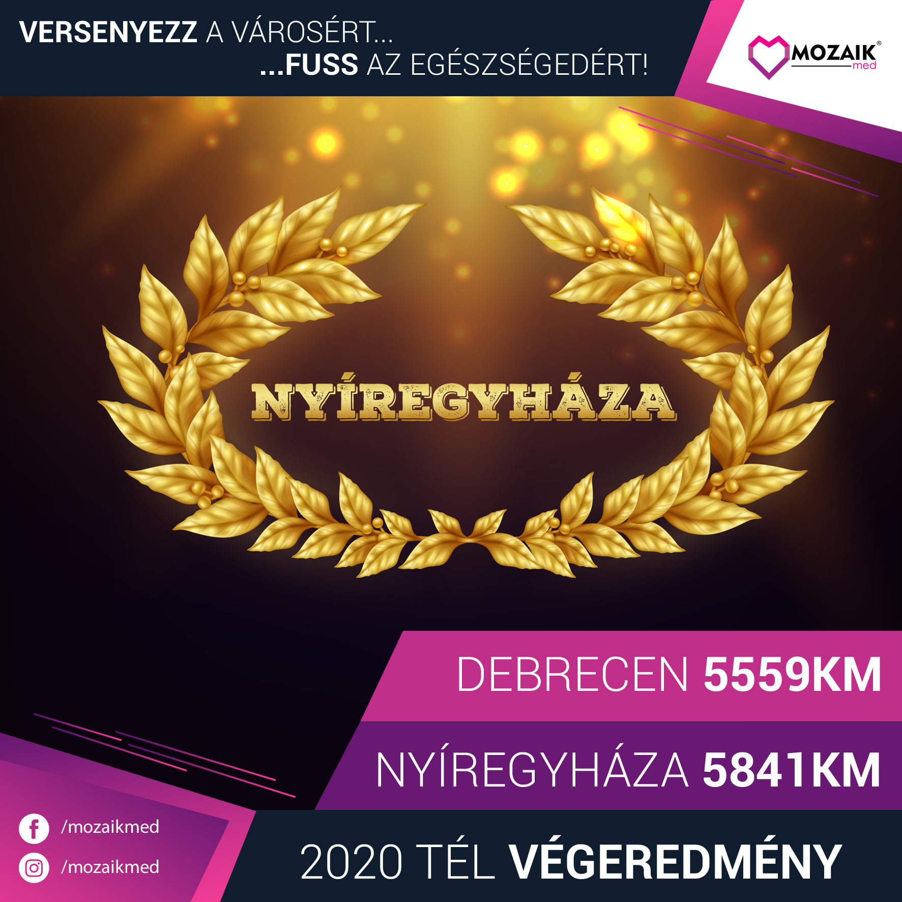 Gratulálok az egész Mozaik Med Futóközösségnek! Lehet hogy voltak napok, amikor picit másként néztünk a másik város futóira, de összességében azt kell látnunk, hogy ez egy remek csapatmunka volt, amely során a Mozaik Med Sportegyesület kimaxolta a teljesítményét!